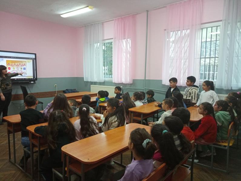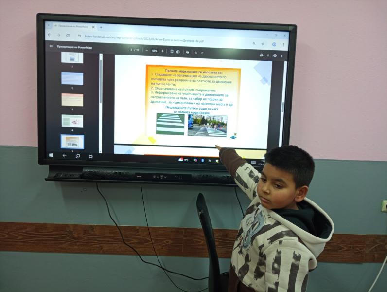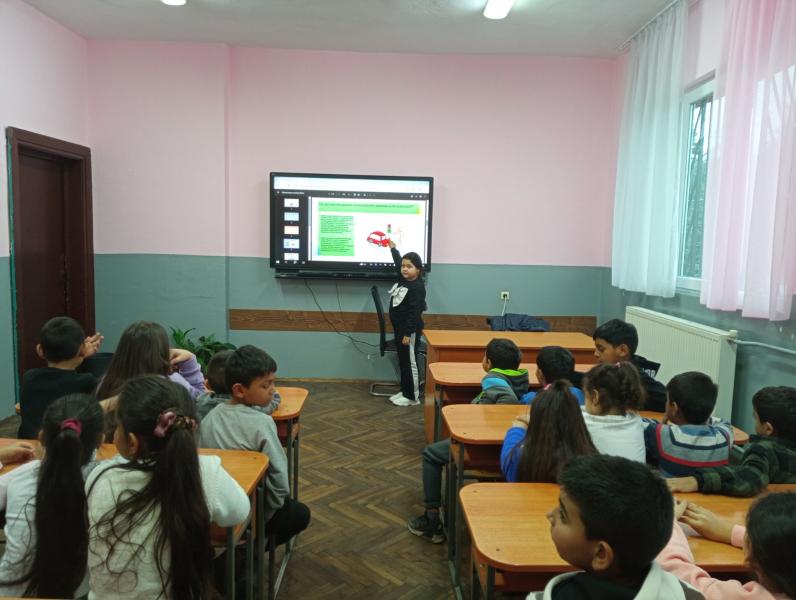 Учениците от 1а и 1б клас изгледаха презентация “На пътя е опасно“. Те си припомниха основните правила и пътните знаци за движение по пътищата. Вдъхновени от презентацията, първокласниците оцветиха сигналите на светофара. Всички участници стигнаха до извода, че всеки трябва не само да познава, но и да спазва пътните знаци.