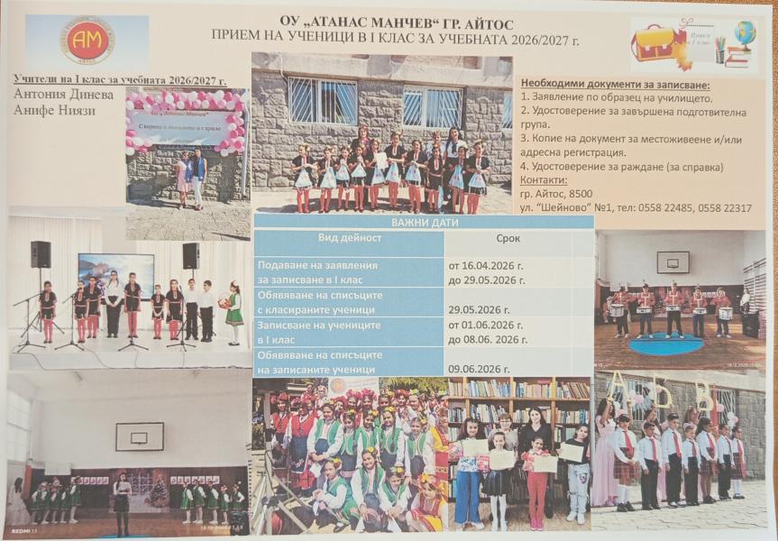 Прием на ученици в първи клас за учебната 2026/2027 година - …